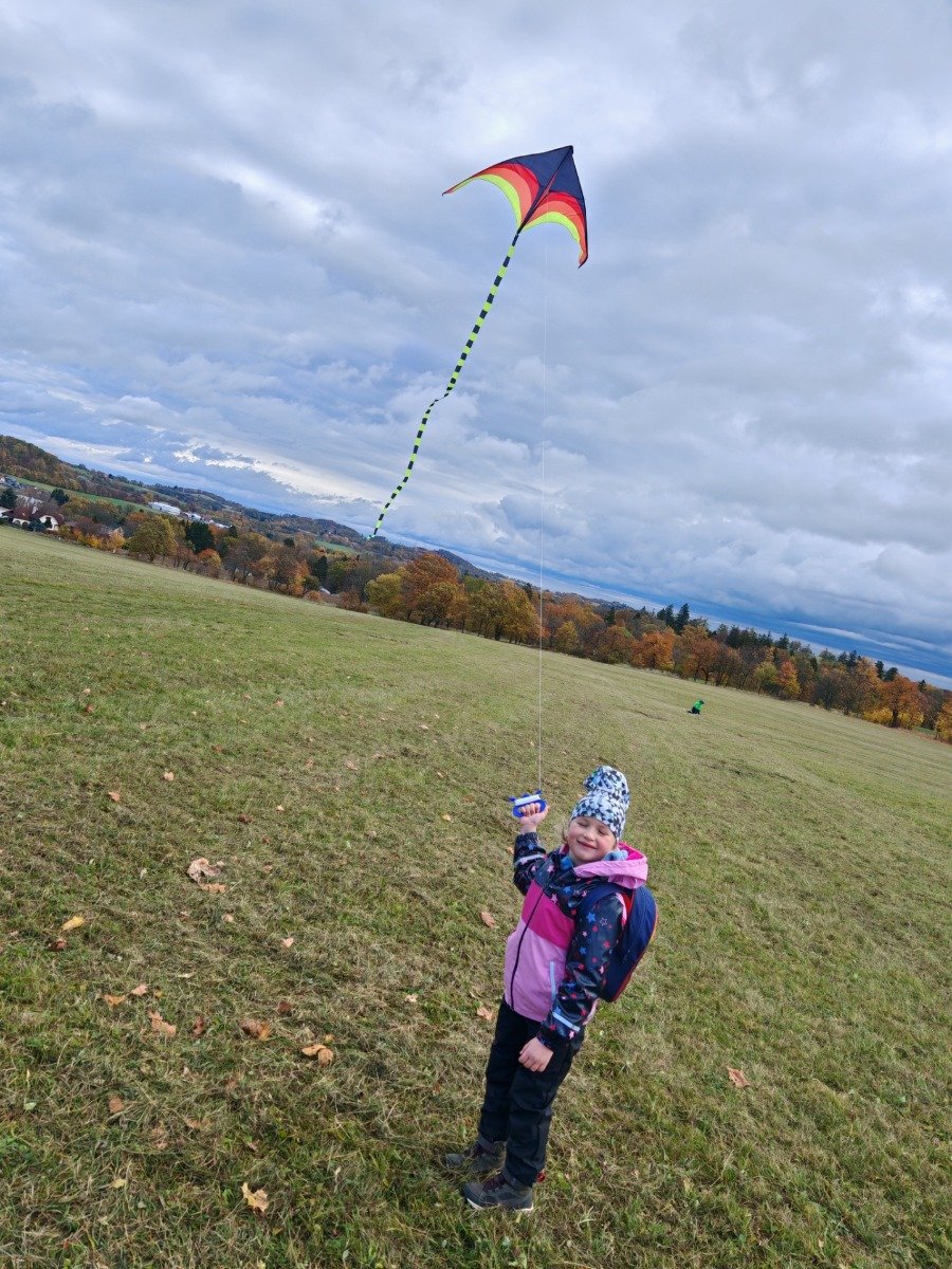 Naši prvňáčci si v týdnu užili hned dvě veselé podzimní akce. Nejprve nás čekal Halloween, který se nesl v duchu kostýmů, her a tvoření. Poté jsme se společně vydali ven na Drakiádu. Počasí nám přálo - foukal vítr, takže bylo možné na obloze pozorovat spousty draků.