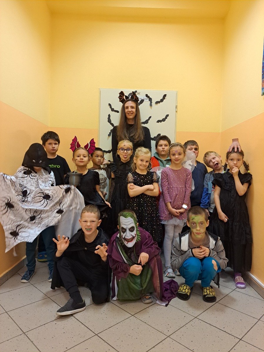 V pátek 31.10. měli naši žáci projektový den na téma Halloween. Povídali jsme si nejen o halloweenském svátku, ale také o podstatě Dušiček. Přestrojili jsme se do kostýmů, zahráli hry a prošli halloweenskou stezku, kde žáci uplatnili nejen matematické a jazykové znalosti, ale řešili i logické hádanky. Žáci za absolvování stezky dostali na památku medaile. Den jsme zakončili diskotékou, kde jsme si zahráli a zatancovali společně s ostatními žáky z prvního stupně.