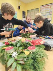 Žáci 5. třídy se v pátek pustili do výroby adventních věnců na vánoční prodejní výstavu, která se bude konat tuto sobotu. Doufáme, že se Vám věnce, které žáci s nadšením a pečlivostí vyráběli, budou líbit!
